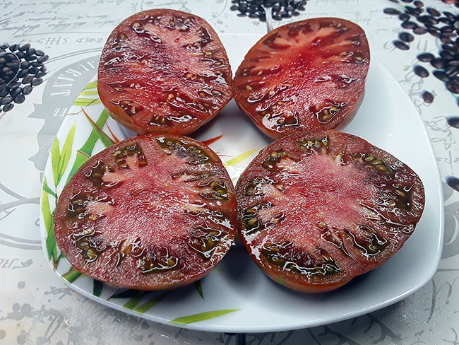 Томат сорта Черный Крым /Black Krim/США (индет., высокорослый (1,8-2м.) среднеспелый, 250-350 г., ф. в 2 стебля) |