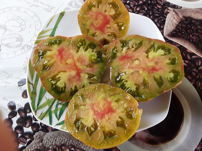 Томат сорт Большие красные полосы внутри /Big Red Stripes Inside/США (индет.,Высокорослый (до 2-х м), среднеспелый, ф. в 2 стебля) |