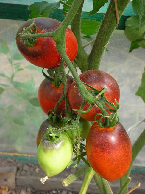 Томат сорт "Фиолетовый изумруд" /Purple Smaragd/, Австрия (индет., высокорослый (1,5-1,7 м), среднеранний, ф. в 2-3 стебля) |