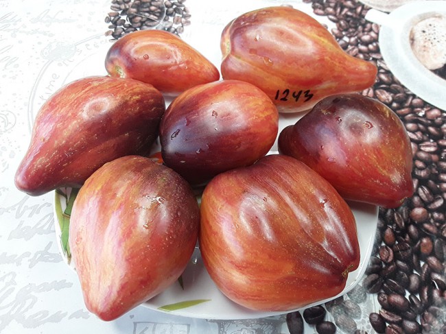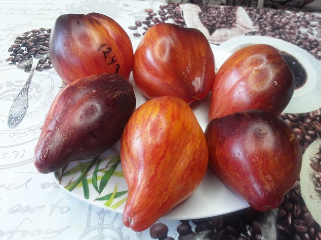 Томат Польская слива тети Сварло /Aunt Swarlo«s Polish Plum/ США (индет., высокорослый (1,8-2 м), среднеспелый, 300-400 до 1 кг., вести в 1-2 стебля) |
