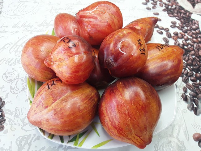 Томат Клубничный /Fragolone/ Италия (индет., высокорослый (1,8-2 м), среднеспелый, 120-180 г., вести в 2-3 стебля) |