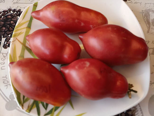 Томат Польская слива тети Сварло /Aunt Swarlo«s Polish Plum/ США (индет., высокорослый (1,8-2 м), среднеспелый, 300-400 до 1 кг., вести в 1-2 стебля) |