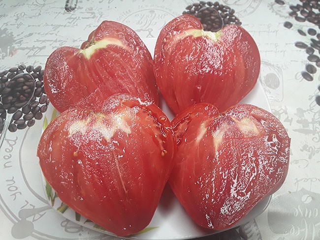 Томат Красные сердца Танти Иванка /Inima Rosie Tanti Ivanca/ Румыния (индет., высокорослый(1,8-2 м), среднеспелый, 350-500 г., вести в 2-3 стебля) |
