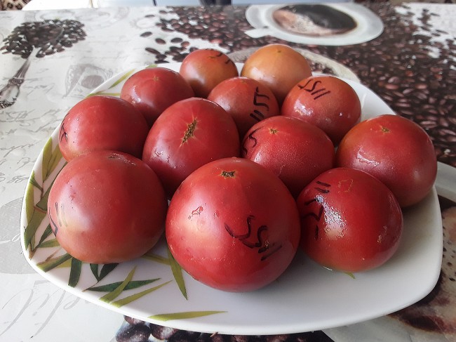 Томат Мистер полосатик /Mr.Stripey/ (индет., до 2-х м., среднеспелый, 150-200 г, вести в 2-3 стебля) |