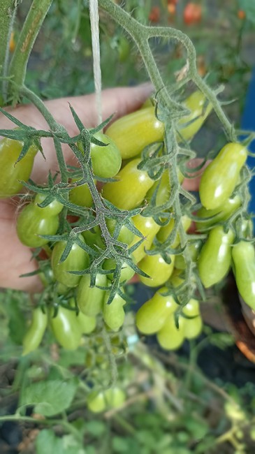 Томат Танцующие Зелёные Пальчики /Dancing Green Fingers/. Семена очень мелкие при посеве только чуть присыпать почвой, лучше потом подсыпать. Индетерминантный, высокорослый (выше 2 м), среднеспелый. Рекомендуется формировать в 3-5 стеблей с обязательным пасынкованием и подвязкой к опоре. Можно и не пасынковать, но тогда плоды будут мелкими. Побеги тонкие, листья ажурные, кисти веерные. Плоды-маленькие сосульки зелёного цвета длиной 5-6 см., при созревании они словно наполняются солнечным светом, и становятся похожими на капли солнечного янтаря. Плотные и хрустящие, с превосходным сладким вкусом эти плоды с успехом могут заменить сладкие конфетки. Детям этот томат очень понравился. Семян в плодах нет или их единицы! Отличный сорт, вяжет без пропусков, беспроблемный и очень вкусный! Создан бельгийским садовником-коллекционером Бартом Праэтом. На фестивале Tomatofest, проходившем на ферме Nos Pilifs в Брюсселе в 2021 году, этот сорт занял второе место среди лучших помидоров ! Семена собраны и упакованы вручную. Упаковка: пакетик zip-lock без полиграфии (без цветных картинок с кратким описанием)