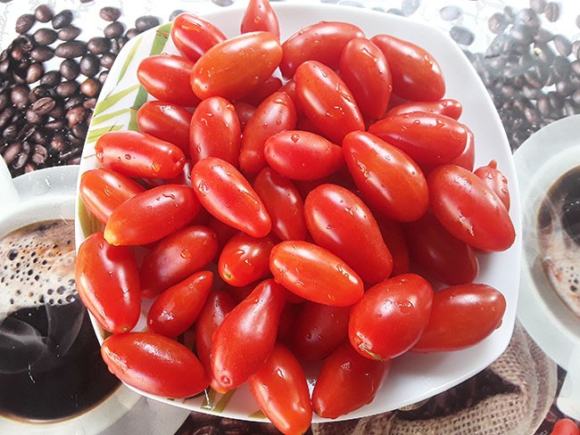 Томат Дахтила Миноа /Dachtyla Mynoa/ США. Детерминантный, низкорослый (60-80см), раннеспелый. Можно пасынковать до первой кисти, подвязывать к опоре. Помидорки красного цвета, пальчиковой формы, некрупные, довольно долго хранятся. Мякоть сладкая, плотная. Сорт очень урожайный, устойчив к болезням томатов в том числе и вершинной гнили.