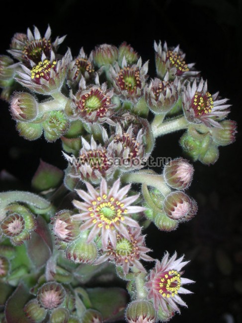 Род молодило /Sempervivum/ представляют почвопокровные декоративно лиственные суккуленты. Это многолетние травянистые растения, формирующие многолистные мясистые розетки листьев диаметром 1-20 см. Корневая система представлена корневищем с мочковатыми небольшими корнями. Расположены они обычно в верхнем слое почвы.