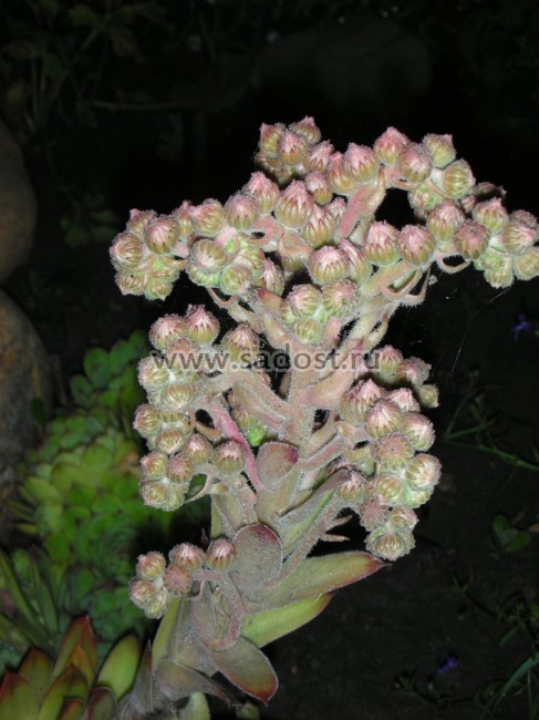 Род молодило /Sempervivum/ представляют почвопокровные декоративно лиственные суккуленты. Это многолетние травянистые растения, формирующие многолистные мясистые розетки листьев диаметром 1-20 см. Корневая система представлена корневищем с мочковатыми небольшими корнями. Расположены они обычно в верхнем слое почвы. Это растение в народе называют каменной розой, за толстые "жирные" листья – заячьей капустой, за жизнестойкость даже в самых крайних условиях существования – молодило. Англичане называют молодило "наседка и цыплята" – молоденькие розетки как цыплята жмутся к матери. В России народные синонимы более разнообразны: живучка, домашний лук, всегда жив, скочки, чеснок дикий, репа степная, артишок дикий, кровельник, громовая трава, живучка кровельная и др. Молодило кровельное /Sempervivum tectorum/ Крупные, около 20 см в диаметре, розетки. Листья зеленые с коричневым кончиком. Цветет в июле темно-розовыми или бледно-пурпурными цветками, сидящими на цветоносах до 40 см высотой. Розетки-дочки прикреплены к растению прочными ветвями. Молодила — чрезвычайно неприхотливые растения. В природе они живут на песчаных и каменистых почвах, поэтому для комфортного существования в саду им необходима легкая, рыхлая, хорошо дренированная почва, нейтральная или слабощелочная. Всем известно что молодило ещё и обладает целебными свойствами. С древних времен это растение употребляется в фармацевтических целях.